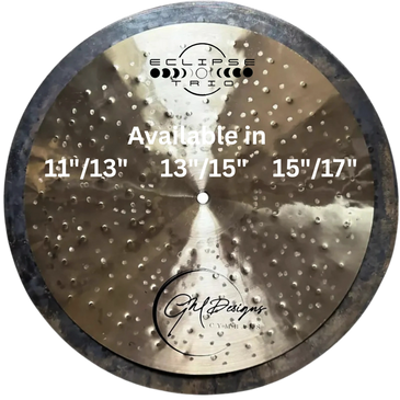Introducing the GM Designs Eclipse Stack! Featuring a flat, dry ride cymbal paired with an inverted super-thin top, it delivers an explosive, trashy white-noise effect with a quick decay. The wavy top adds a shimmering, sizzling bite, while the flat base provides a controlled, articulate tone—perfect for riding or punchy accents. Named for its eclipse-like appearance, this visually stunning stack offers bold, versatile sounds and can be used as a dynamic stack or separated for two unique cymbal voices. Available in 13"/15", 15"/17", and 17"/19" configurations, it’s perfect for drummers seeking creative new tones at a great value.