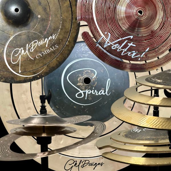 GM Designs offers one of the most diverse and innovative spiral cymbal lineups available, each crafted to deliver its own personality and sonic character. The 13" Spiral is a heavy-weight model with an 8" bell, producing cutting, powerful accents with a commanding voice. Its counterpart, the 16" Spiral, is a medium-weight cymbal with an 8" bell, balancing projection with musicality for accents that shimmer and roar. The 17" and 18" Spirals belong to our affordable GMD Series, both medium-thin in weight and designed to deliver quick, trashy bursts of sound—perfect for stacking or sharp effects. Rounding out the core line is the ¡Volta! 14" Spiral, an extra-thin model that responds instantly with fiery, dark, and fast accents, versatile enough to be stacked or played on its own for a sharp edge in any style.