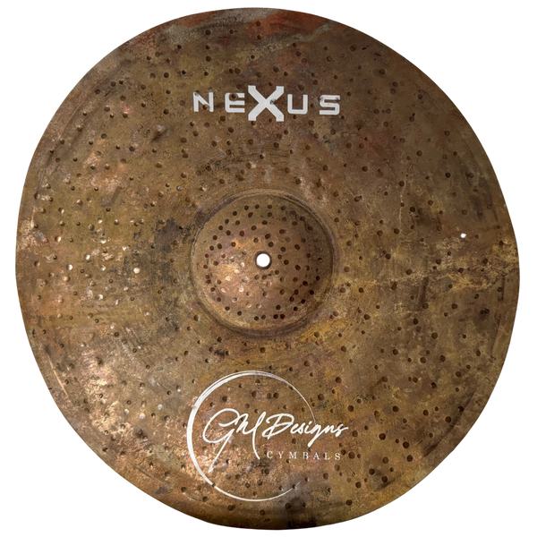The Nexus Series from GM Designs pushes the boundaries of cymbal design, uniting two worlds into one. With raw, unlathed tops and fully lathed undersides (except for the bell), these cymbals embody the perfect balance of contrast—dark and simmering yet alive with hot, dry definition. Their thin, wavy construction gives them a deeply expressive character, opening up with roaring power at higher volumes while retaining control and nuance at softer dynamics. Each strike reveals a new voice, from crisp articulation to explosive wash, making them incredibly versatile across styles.